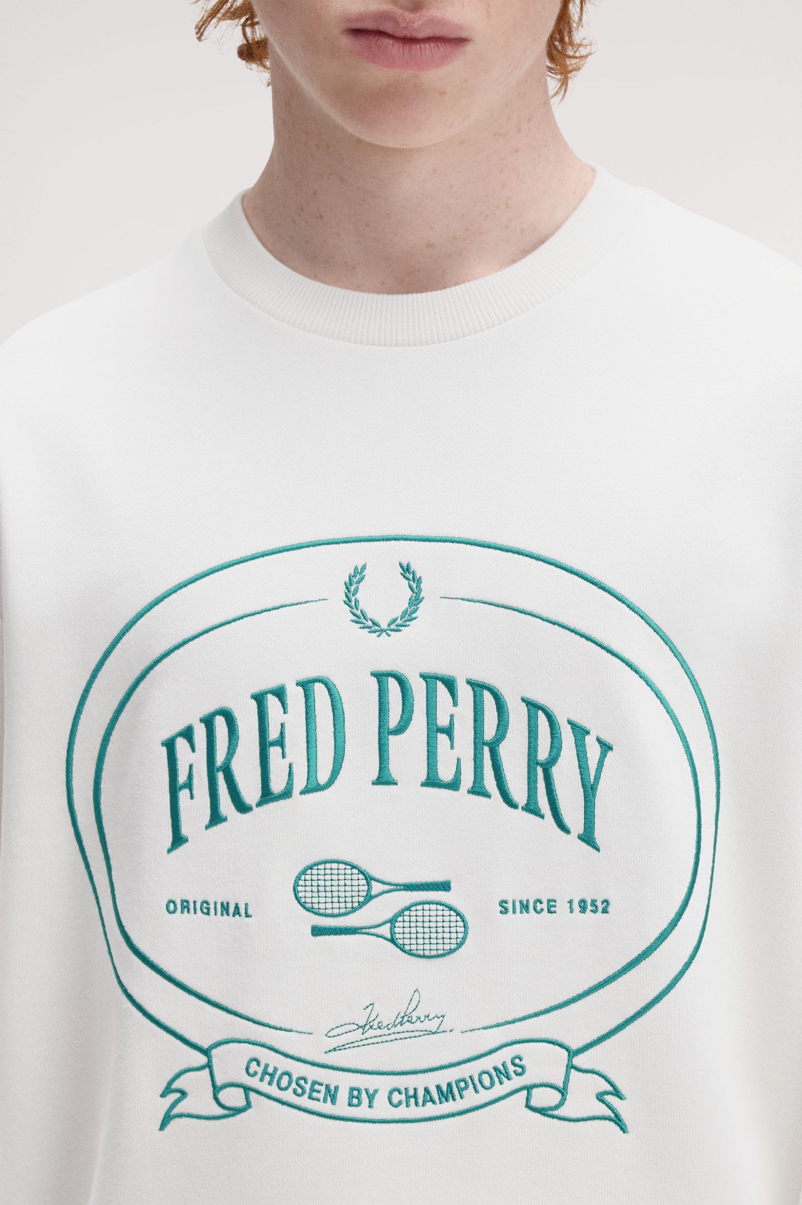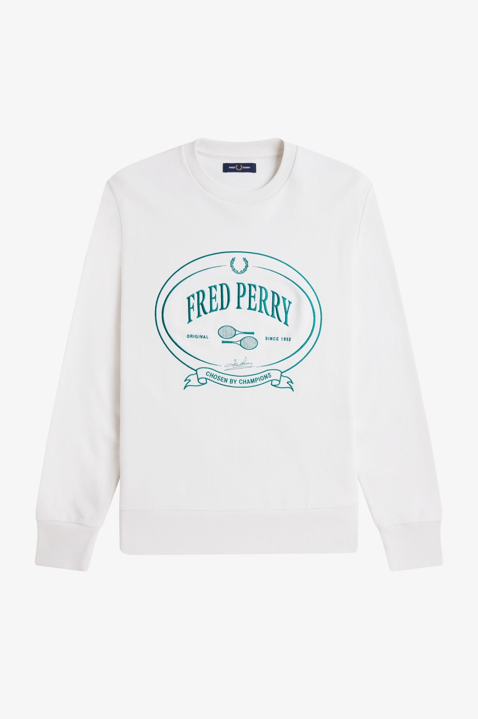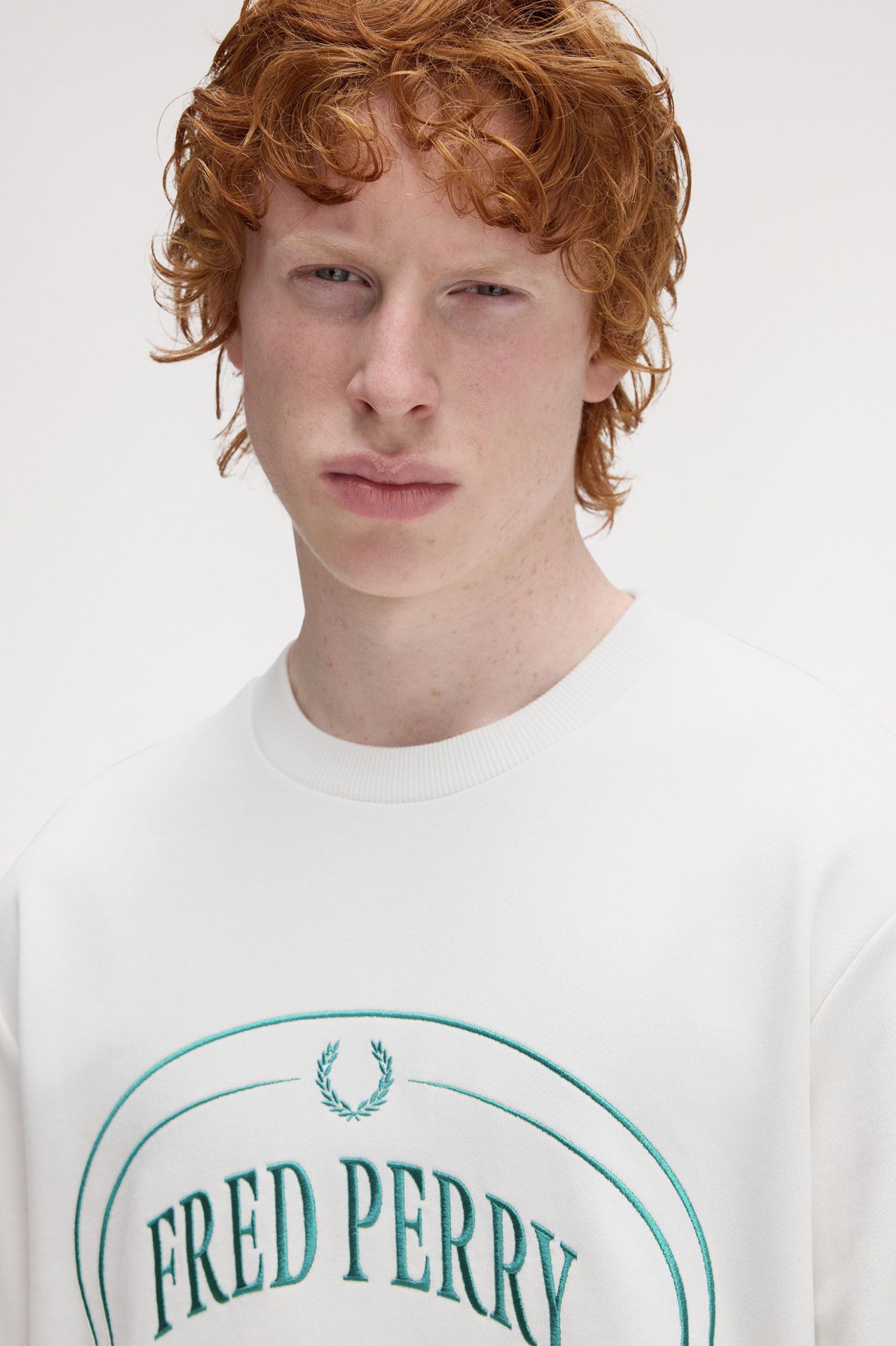 This cotton Sweat features vintage-inspired branding drawn from our 1970s archives. Crafted from cotton jersey, it offers a relaxed fit with open cuffs and hem, a crew neckline, and a centrally printed Fred Perry logo.