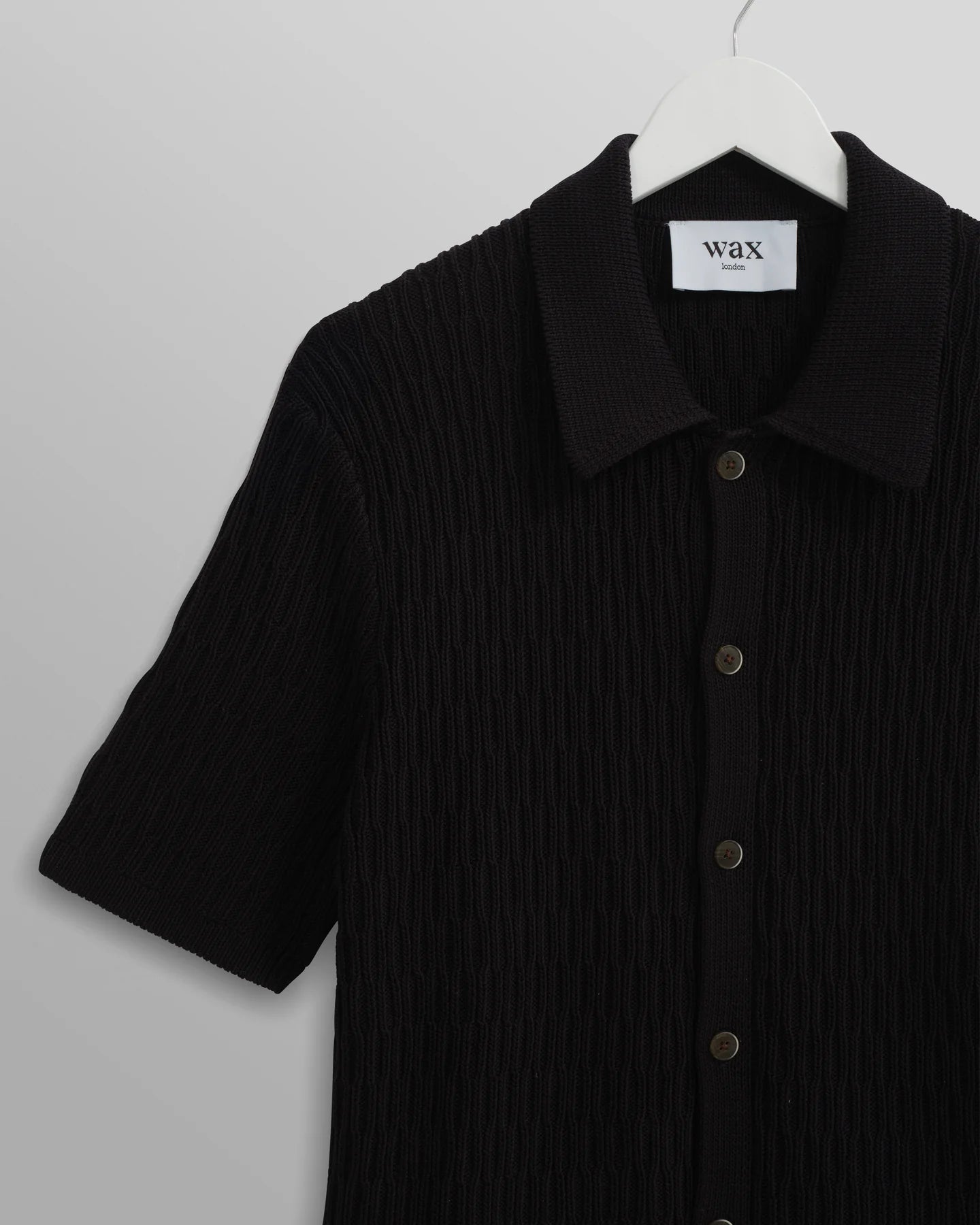 Wax London Navy Honeycomb Tallero Knitted Cotton Polo Shirt