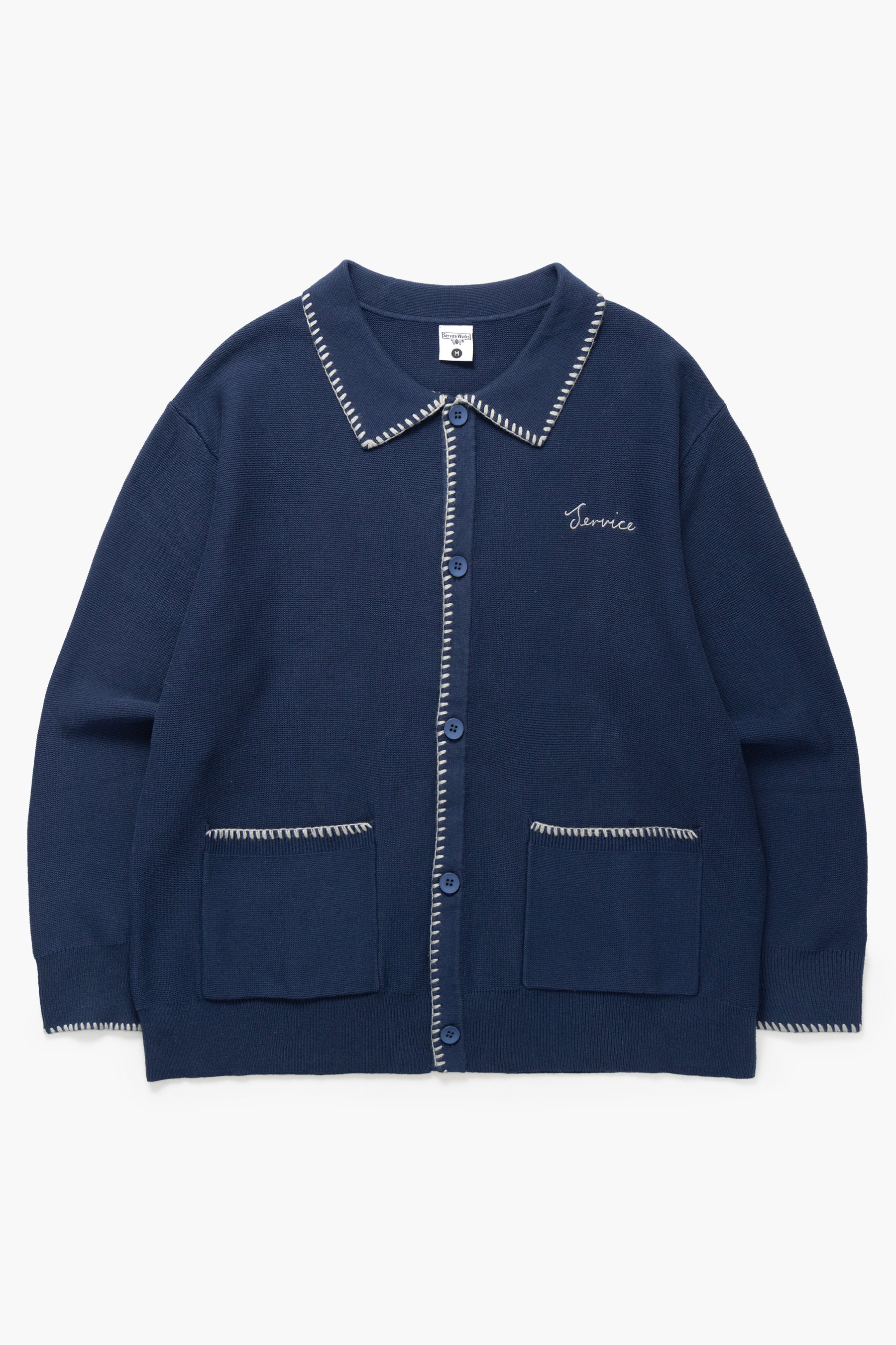 Service Works Navy Blanket Stitch Cardigan